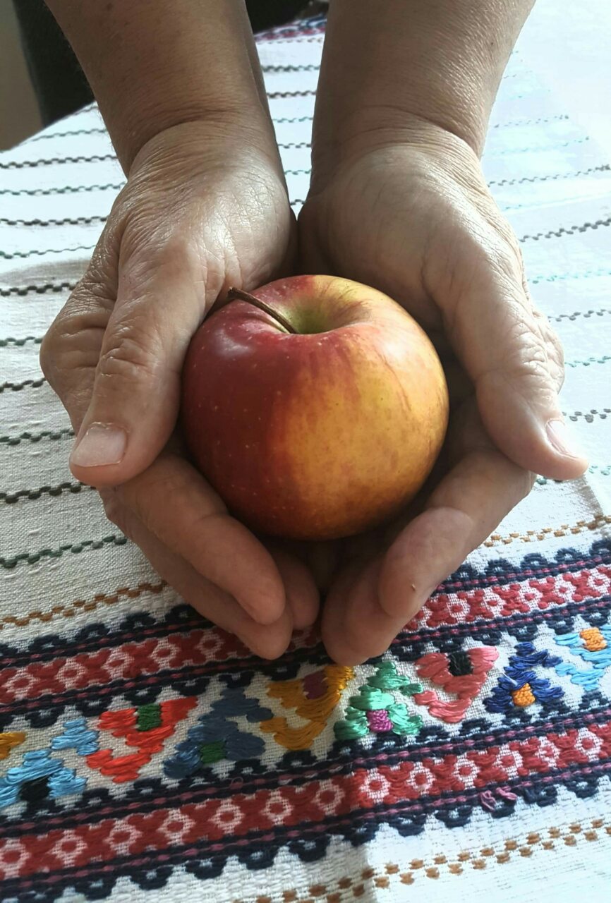 Još mi je nešto pričala, a onda iz njedara izvadila dvije jabuke i pokušala mi ih dati pružajući ruke ispod stola. Bila sam pomalo zbunjena, a onda smijući se pružila ruke preko stola da uzmem jabuke. Ona je pogledala po punoj zbornici i tiho rekla: “More bit ovi će mi tvoji zamjerit štogod.”